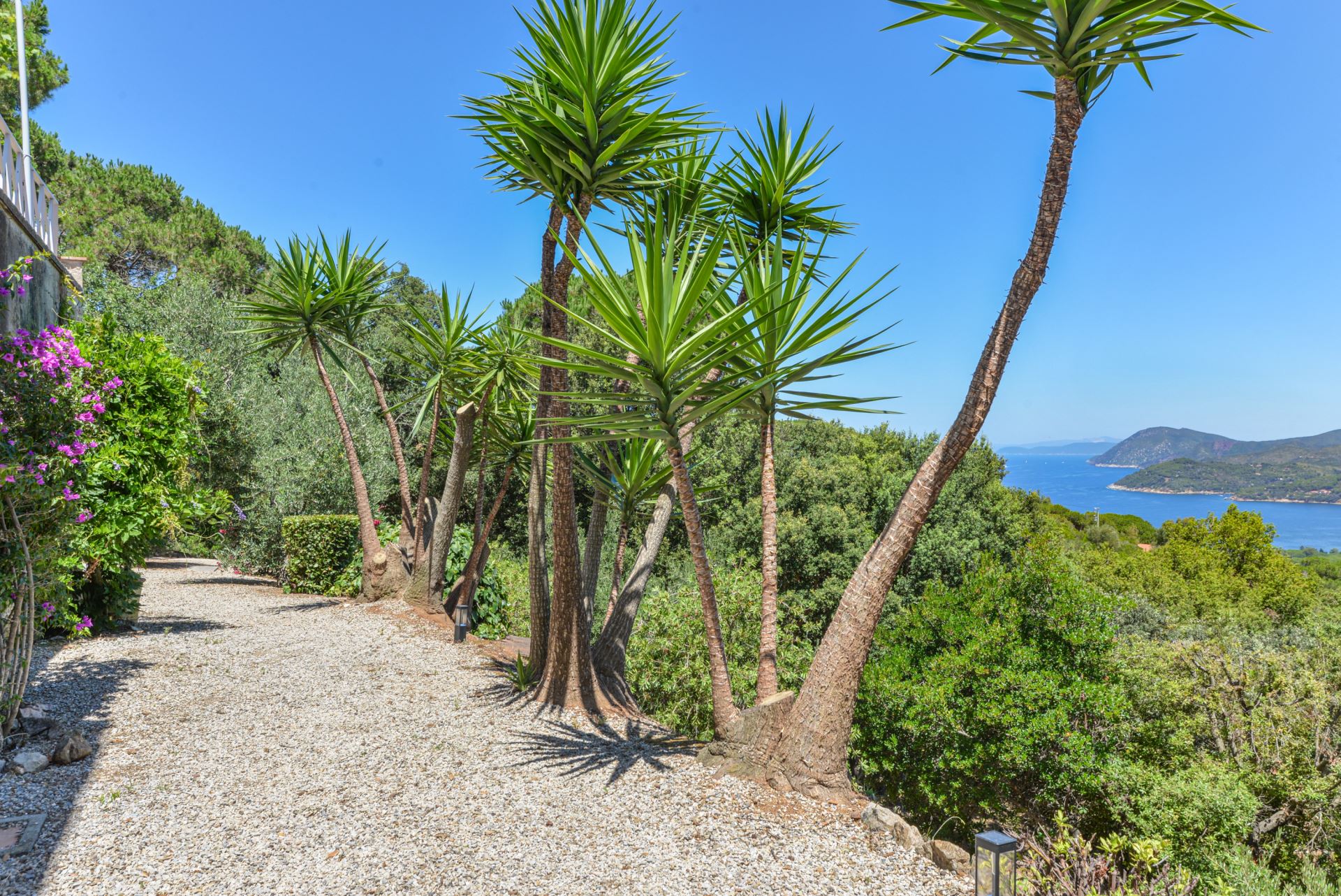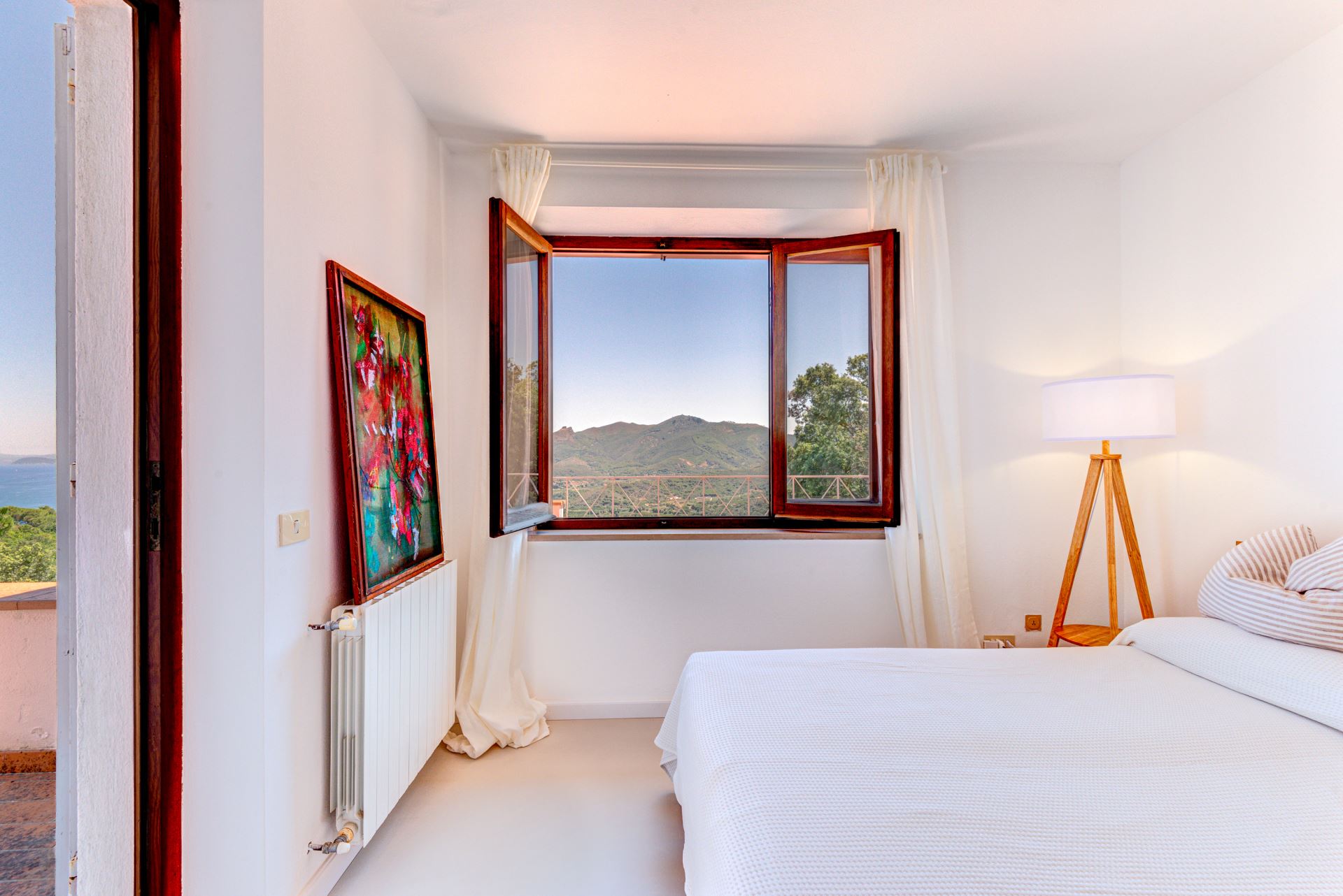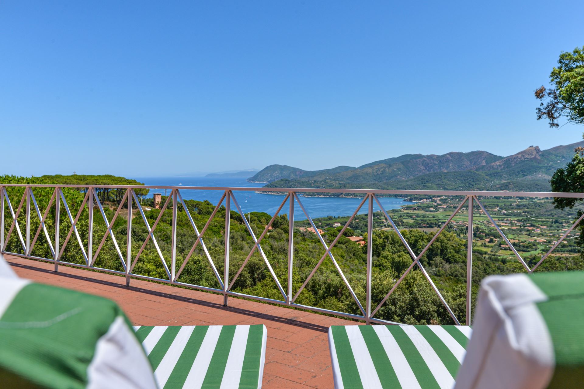 Sie werden von einem Blumengarten mit 8 Parkplätzen begrüßt. Die Villa, die auf zwei Etagen angeordnet ist, bietet im Erdgeschoss ein Wohnzimmer mit Meerblick, einen großen Essbereich mit elegant eingerichteter offener Küche und zwei Doppelzimmer, jedes mit eigenem Bad. Im Obergeschoss verfügt der Hauptschlafbereich über drei Doppelzimmer mit 2 Bädern. Alle Zimmer verfügen über eine Terrasse, von der aus Sie einen Postkartenblick auf die Insel Elba und insbesondere den Golf von Bagnaia genießen können. Insgesamt bietet die Villa Platz für bis zu 10 Personen. Die Küche und das Wohnzimmer führen zu einem charmanten eingezäunten Innengarten, in dem Sie einen Aperitifbereich mit Meerblick und einen Esstisch für 10 Personen finden, ideal für Mittag- und Abendessen im Freien. Hier stehen Ihnen ein Grill und ein Holzofen zur Verfügung. Am Abend, wenn die Sonne untergeht, verwandelt sich die umgebende Natur in ein Spektakel lebendiger Farben und schafft Momente purer Magie und Romantik, die Ihren Aufenthalt unvergesslich machen werden. Wenn Sie ein paar Stufen hinuntergehen, finden Sie einen Fitnessraum, der für kostenlose Körperübungen mit eigenem Bad ausgestattet ist, und zur Verfügung der Gäste gibt es Waschmaschine und Trockner.