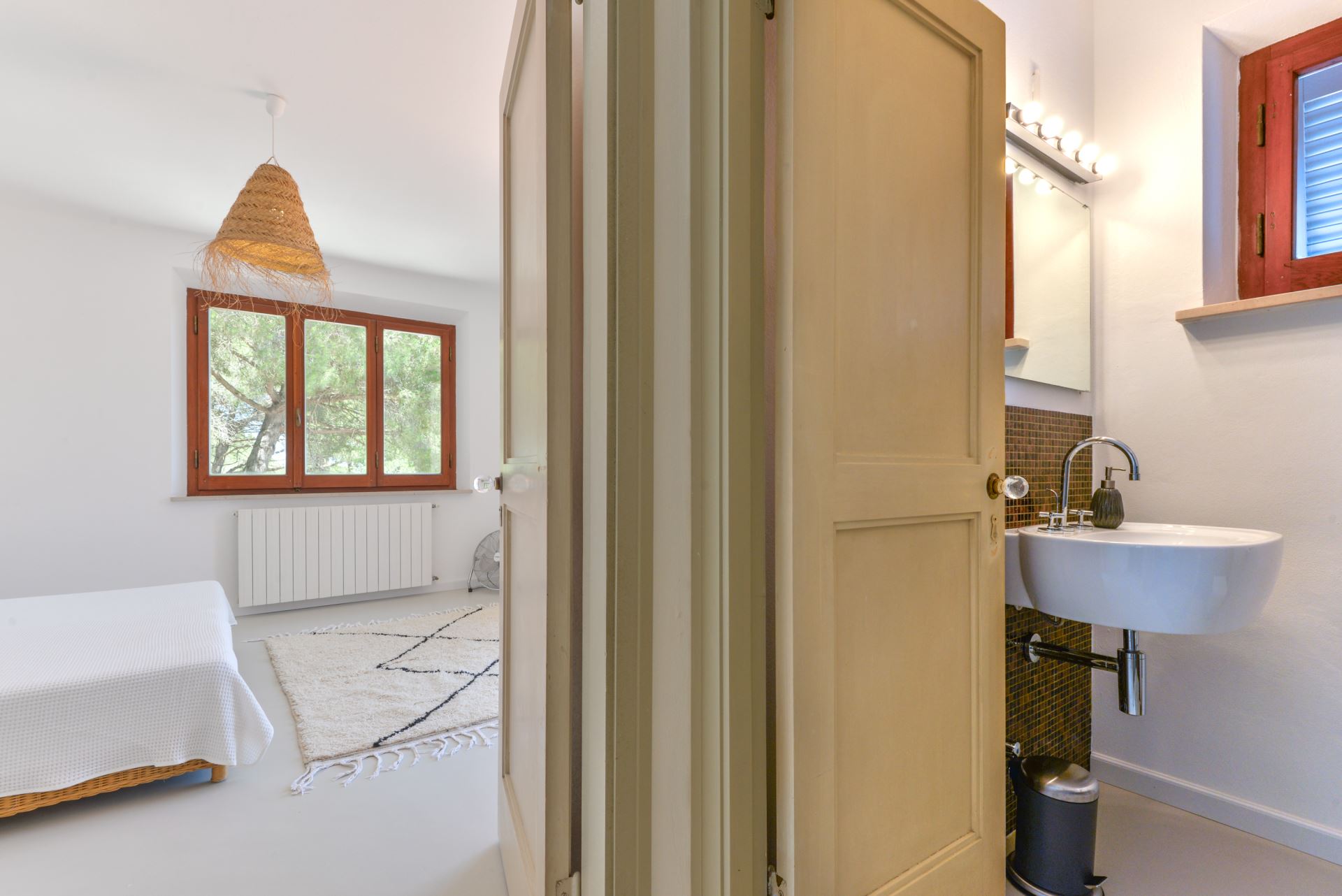 Der private Pool (11x5m) befindet sich etwa 70 m entfernt und ist über eine Treppe mit 44 Stufen zugänglich, die von Korken, duftenden Kiefern und Eichen umgeben ist. Der Bereich ist mit Sonnenliegen, Sonnenschirmen und einem Badezimmer ausgestattet. Die isolierte Lage in Bezug auf die Villa garantiert maximale Privatsphäre.