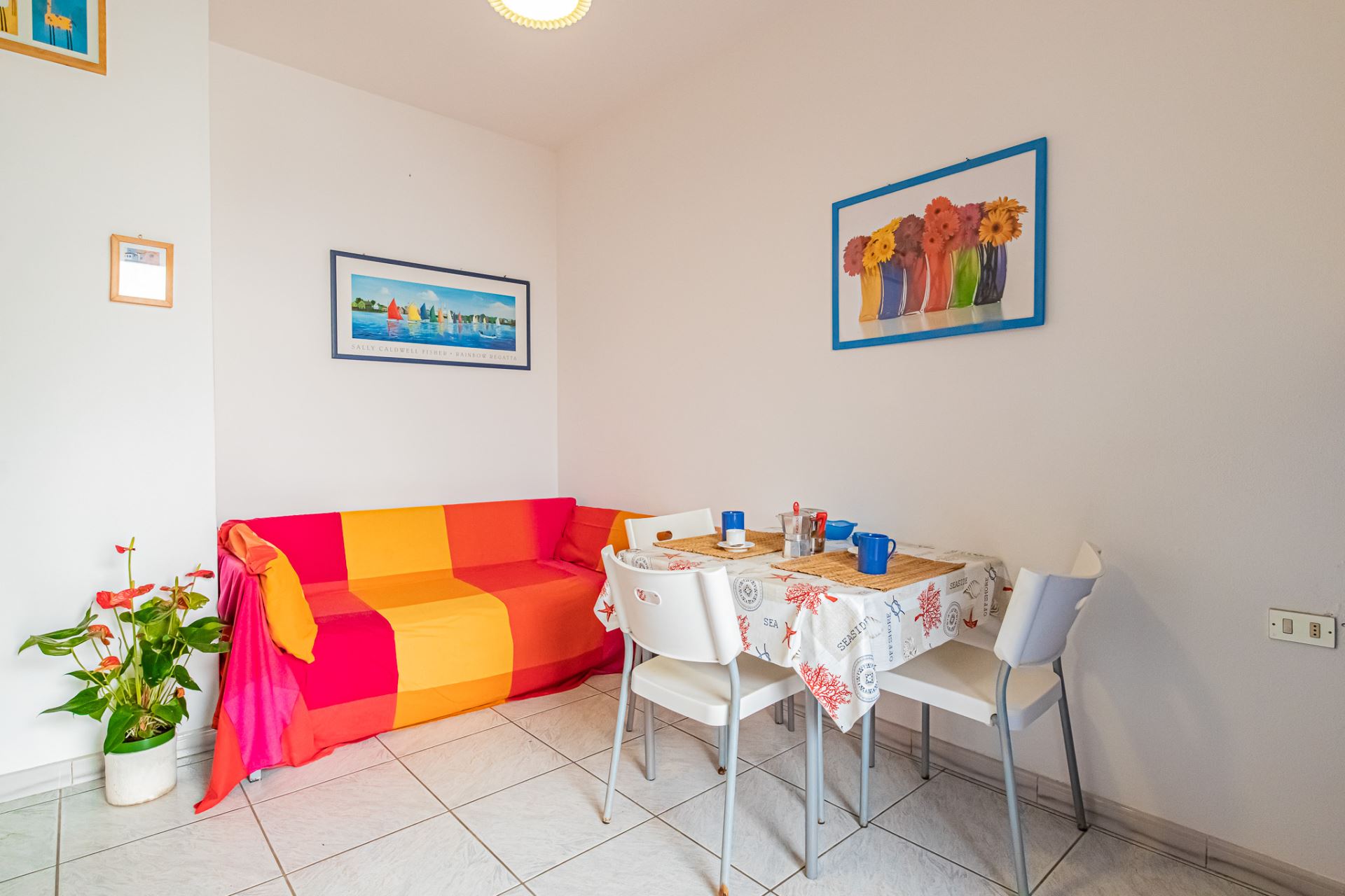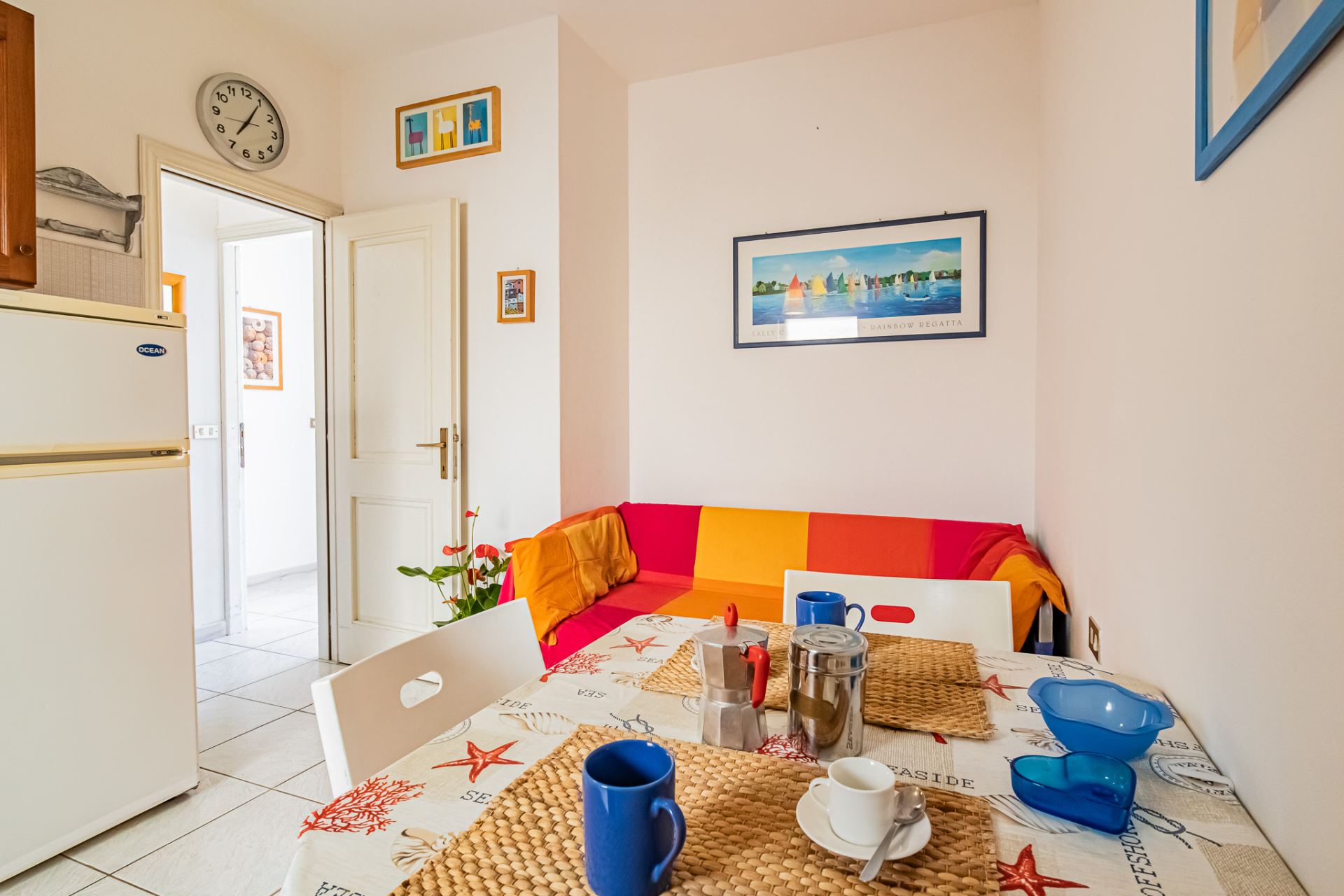Entrando ci troviamo nel soggiorno con cucina, arredato con un comodo letto matrimoniale e un armadio a tre ante.