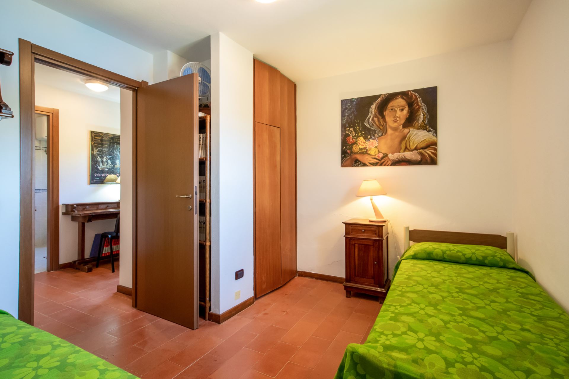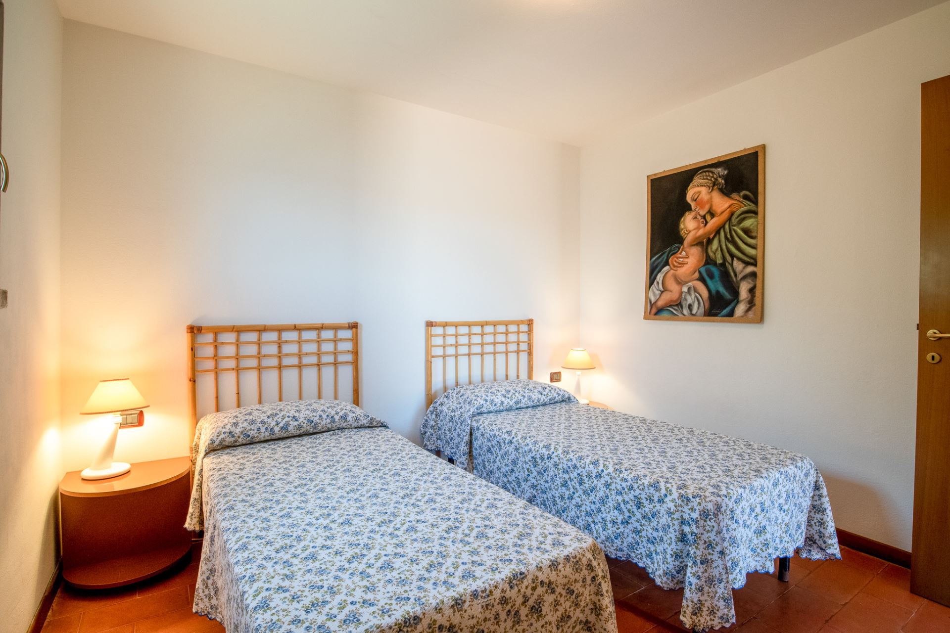 All'interno, vi attendono 3 camere da letto, offrendo spazio e comfort per tutti gli ospiti. Due camere matrimoniali creano un'atmosfera di tranquillità e intimità, mentre una camera con due letti singoli è perfetta per gli amici o i bambini. Al primo piano troverete un bagno elegante e funzionale, mentre al piano terra c'è un accogliente soggiorno con cucina, un bagno aggiuntivo e un comodo letto singolo.